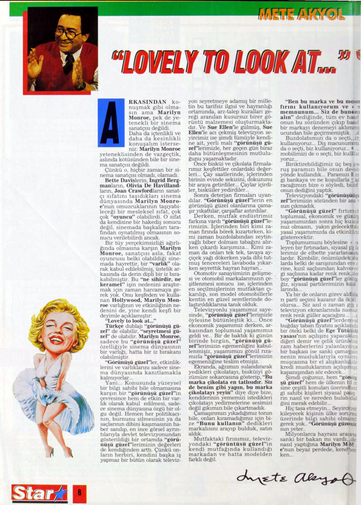 Marilyn Monroe yeteneklisinden de vazgeçtik, aslında kötüsünden bile bir sinema sanatçısı değildi.