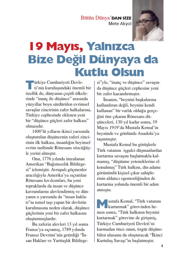 19 Mayıs, Yalnızca Bize Değil Dünyaya da Kutlu Olsun