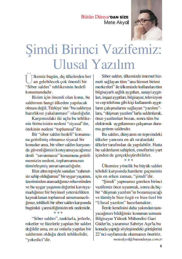 Şimdi Birinci Vazifemiz: Ulusal Yazılım