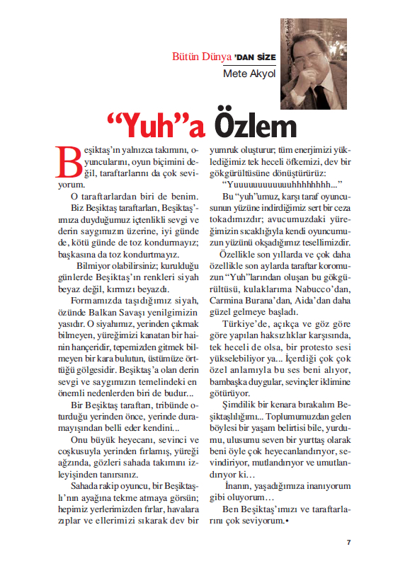 Şimdilik bir kenara bırakalım Beşiktaşlılığımı… Toplumumuzdan gelen böylesi bir yaşam belirtisi bile, yurdumu, ulusumu seven bir yurttaş olarak beni öyle çok heyecanlandırıyor, sevindiriyor, mutlandırıyor ve umutlandırıyor ki…