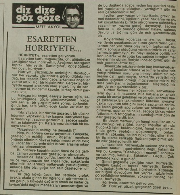 HÜRRİYET’ e, esaretten geliyorum.