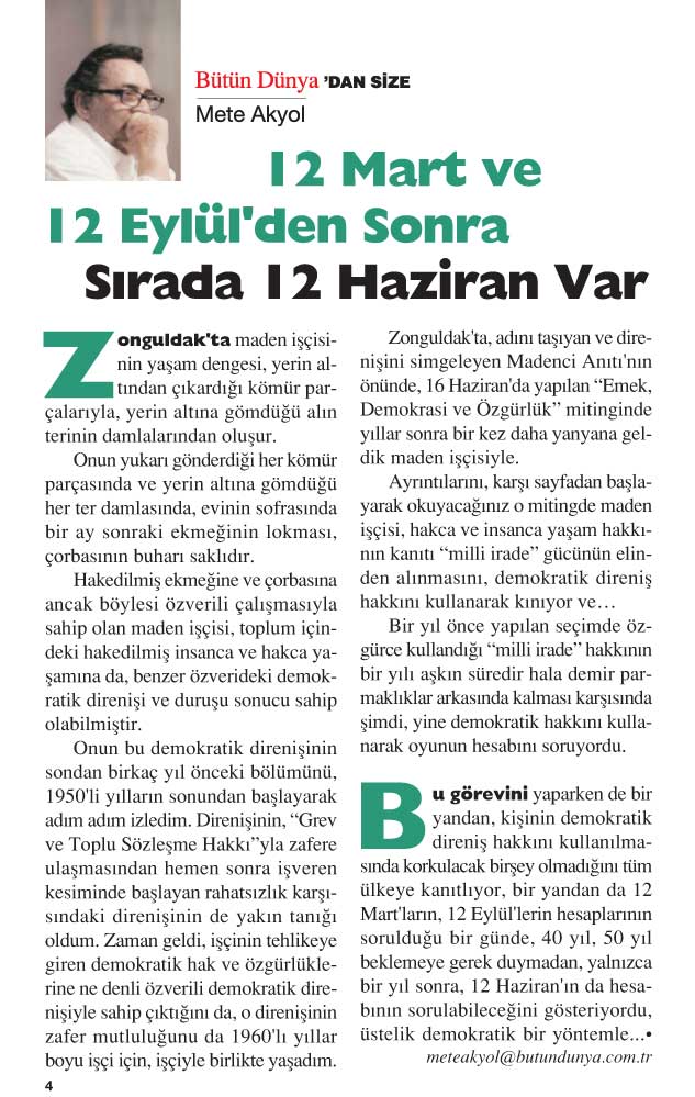 12 Mart ve 12 Eylül’den Sonra Sırada 12 Haziran Var